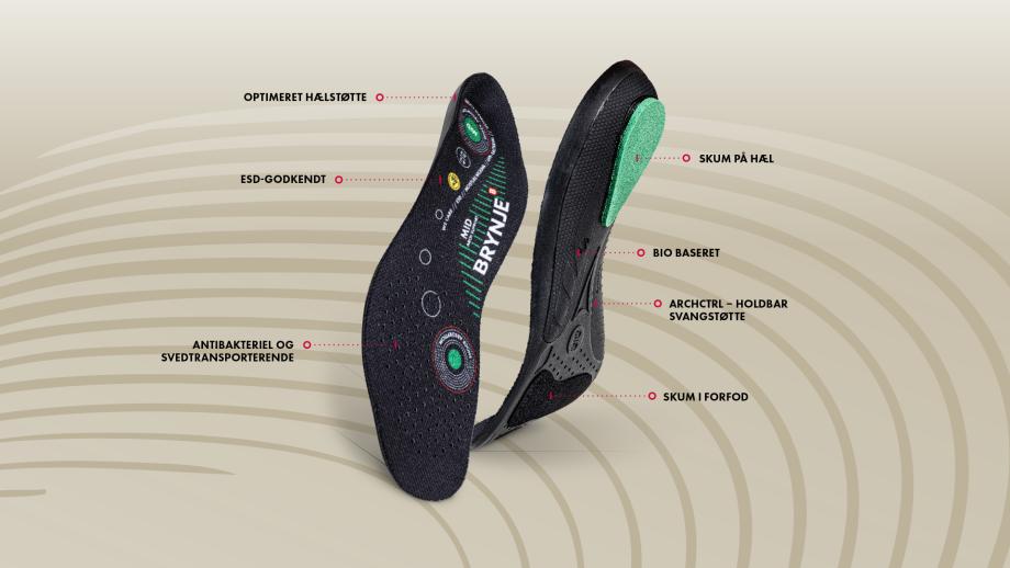 BRYNJE Ultimate FootFit+ svangsåler er en opgradering udviklet på baggrund af den nyeste sundhedsfaglige viden. Med ArchCTRL, optimeret konstruktion og forbedrede materialer kombineres holdbar svangstøtte og øget stødabsorbering for at forebygge og reducere smerter og træthed gennem hele arbejdsdagen.